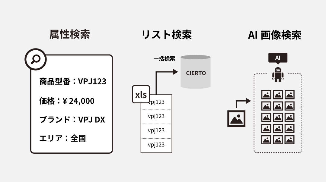 属性情報検索やAI検索など豊富な商品検索機能